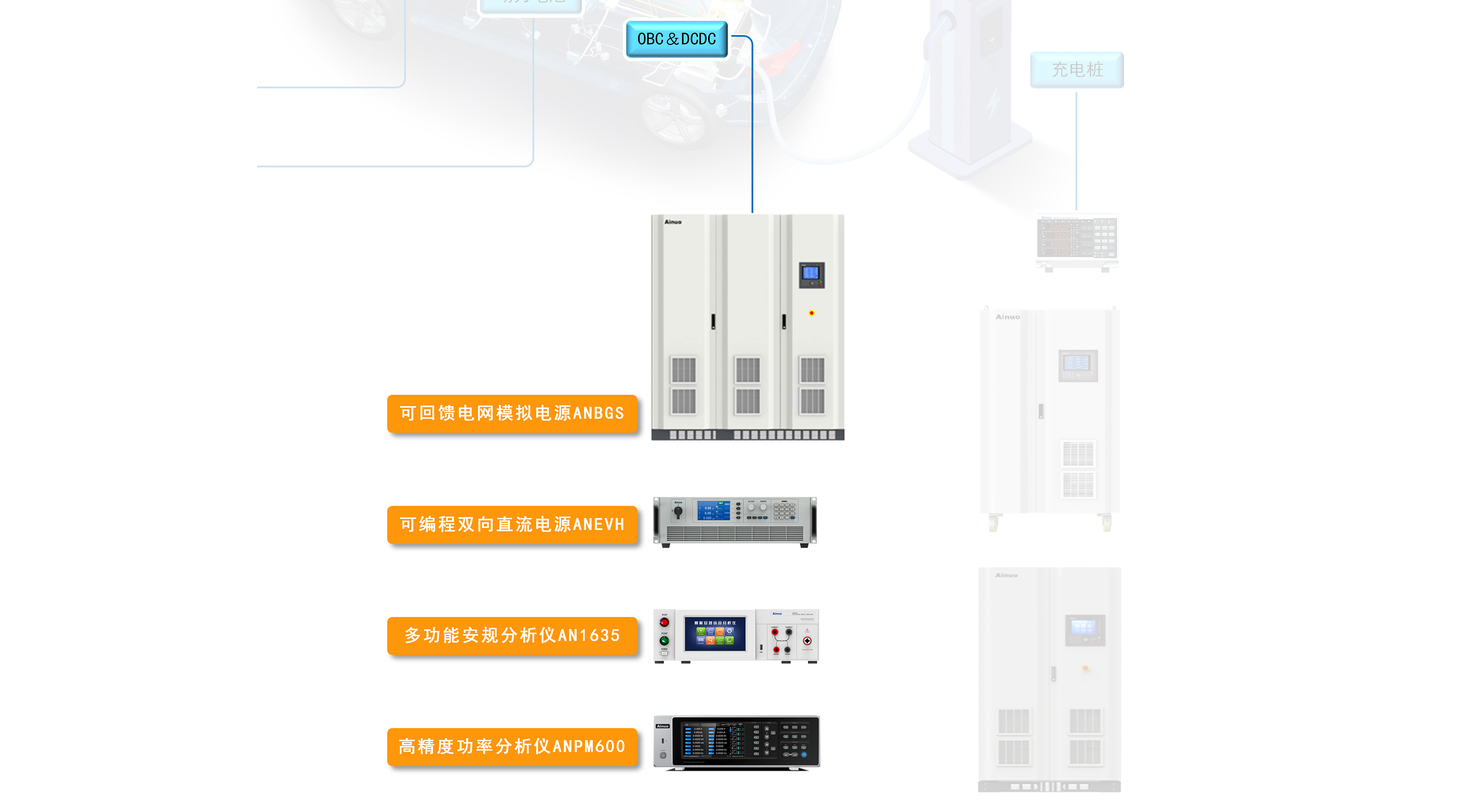 OBC(车载充电机)和DCDC(直流-直流变换器)是电动汽车的核心部件,OBC和DCDC的功能质量对于整车的性能和安全性至关重要。在OBC和DCDC,以及整车开发测试过程中,需要对OBC和DCDC进行功能和性能方面进行全面的测试。