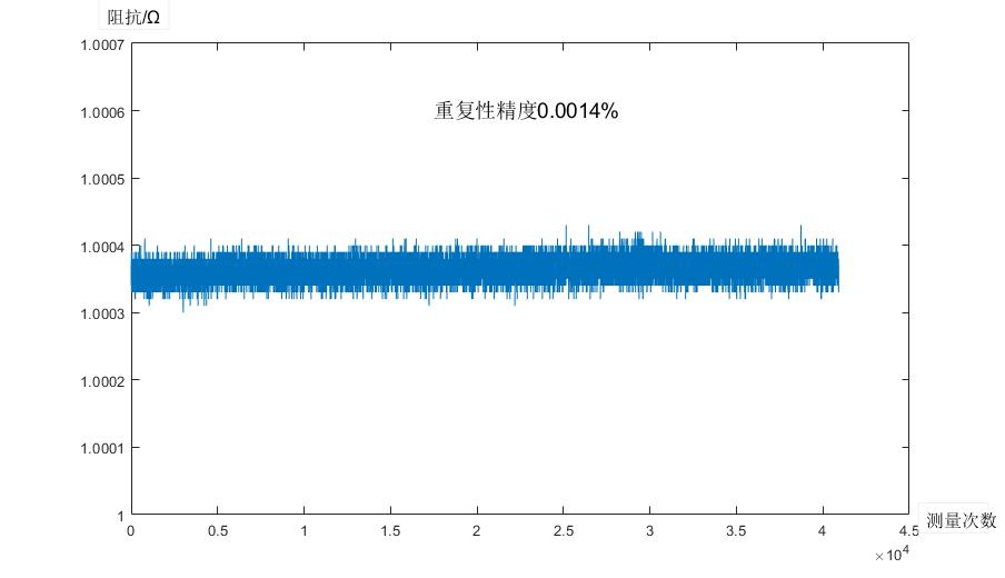 下图是在1kHz频率,slow2模式,1Ω量程,测量1Ω电阻时的曲线,测量次数4万次,重复性精度小于0.002%。