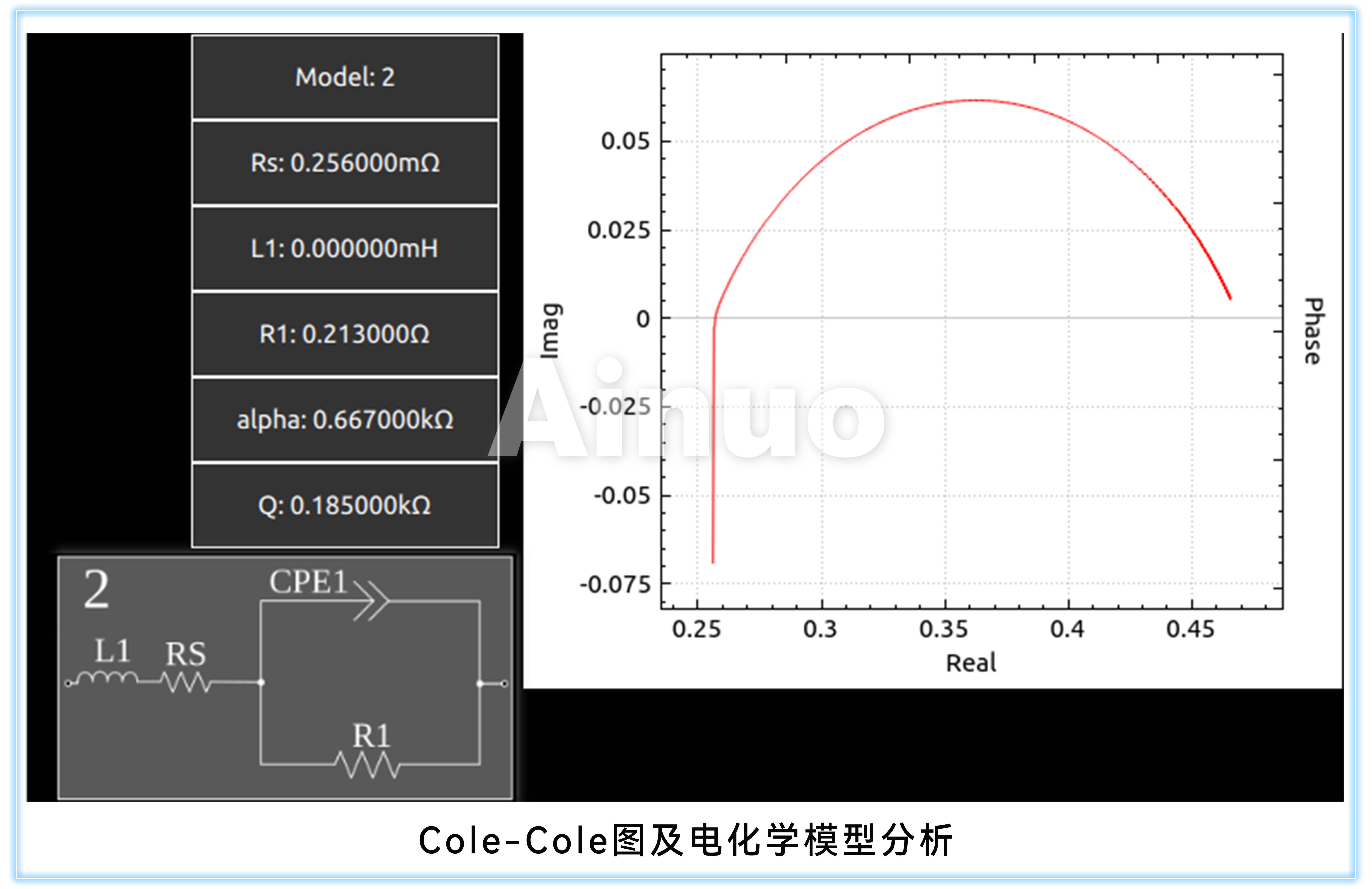 IM89130电化学阻抗分析仪可实现对电化学系统的自动扫频,生成Cole-Cole图,并基于Cole-Cole图进行电化学模型分析,从而评估电化学系统的溶液电阻、双电层电容、电荷移动电阻等特性。