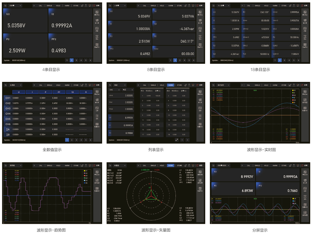 ★多路谐波分析:八通道可同时进行谐波分析,最高500次谐波测量,失真度分析,可直观显示各次谐波含量和总含量;