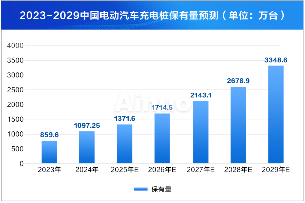 近期比亚迪公司发布了超级e平台技术,搭载闪充电池,实现充电功率1000kW、刷新了电动车性能的新标杆。充电桩技术同步突破,单模块功率达60kW,电压升至1000V。在"双碳"政策驱动下,"光-储-网-充-车"生态加速发展,充电桩市场年复合增长率25%,预计至2029年将超3000万台。